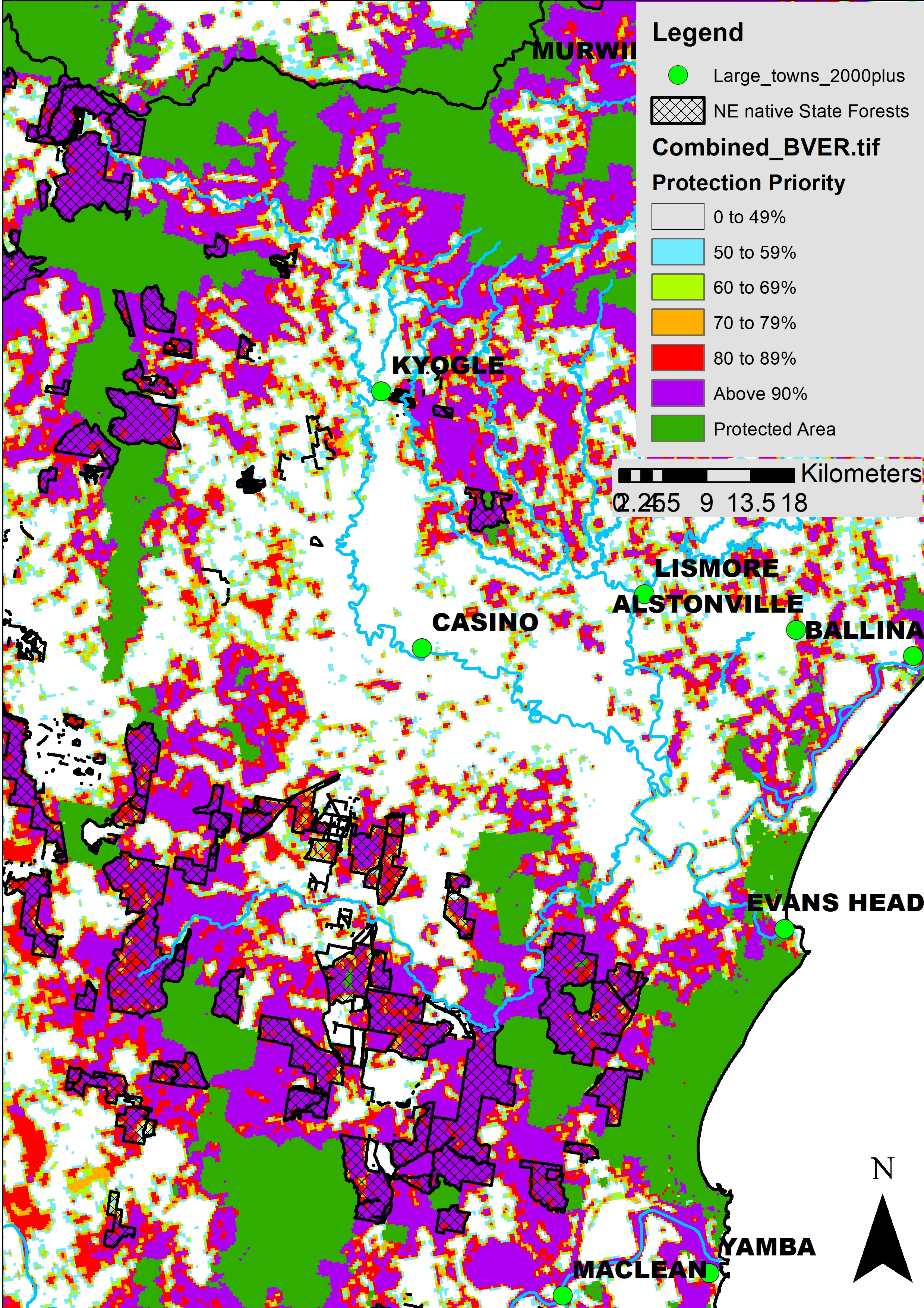 In recognition of the world’s rapidly worsening biodiversity crisis, Commonwealth and State Governments have committed to the Global Biodiversity Framework target to protect 30% of Australia by 2030. In accordance with the National Roadmap for achieving 30by30 the governments have released maps showing priority areas for protection, identifying State Forests in north-east NSW as amongst the highest priorities in Australia for areas with important biodiversity and ecosystem values and relatively low levels of protection. This includes as high priorities all State Forests in the Northern Rivers, including the Richmond River Koala Parks.
